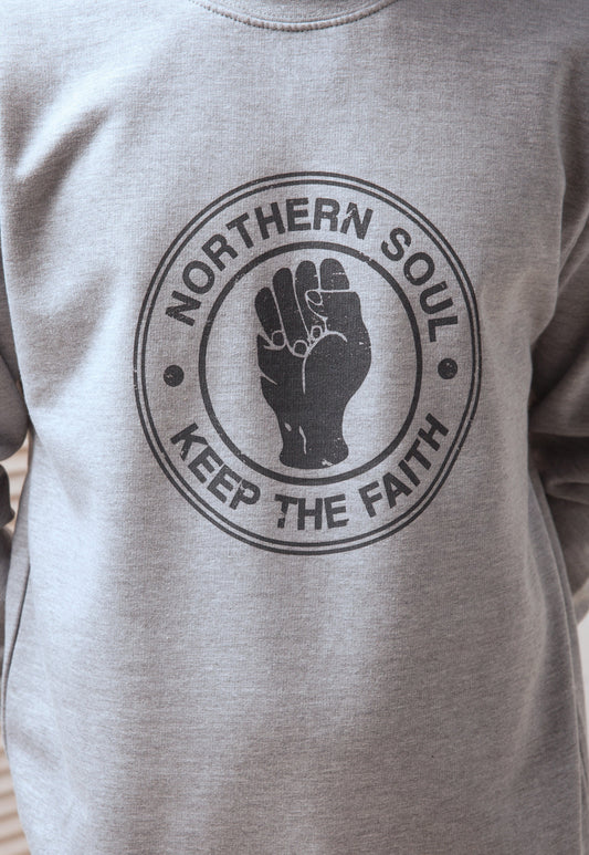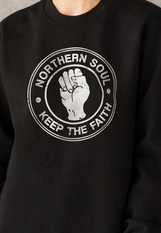 Northern Soul Keep The Faith Sweatshirt Fist Logo Retro Mods 60s 70s Music Women's Men's Graphic Screen Printed Jumper Sweater Pullover Top