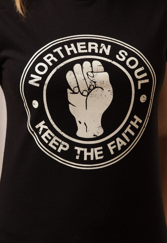 Northern Soul T Shirt Keep The Faith Fist Hand Logo Retro Motown Wigan Casino Mod 60s Music Screen Printed Women's 100% Organic Cotton Tee