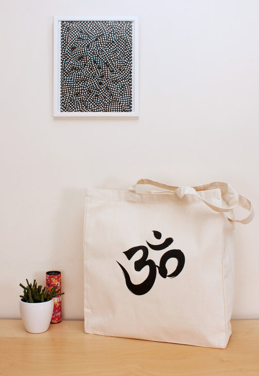 Om Ohm Aum Tote Cotton Canvas Tote Shopper Bag Screen Printed Eco Friendly Market Tote Yoga Art Buddhism Meditation Hinduism Hindu Buddhist