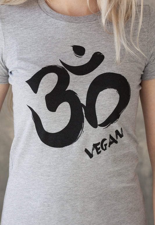 Om Vegan T Shirt - Ohm Aum Sanskrit Calligraphy Veggie Animal Rights Liberation Yoga Mindfulness Activist Women's Girls Graphic Printed Tee