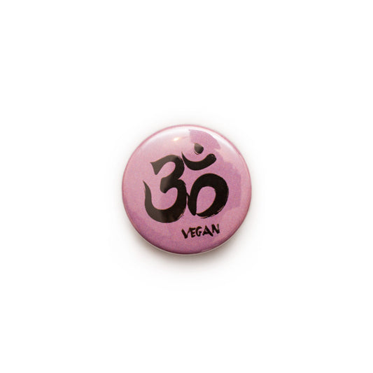 Om Sanskrit Vegan Badge · 38mm Pin Button · Animal Rights Herbivore Gift