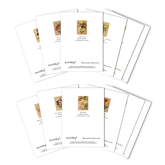 Set of 10 Antique Botanical Greeting Cards – Vintage Floral Art for Birthdays & All Occasions
