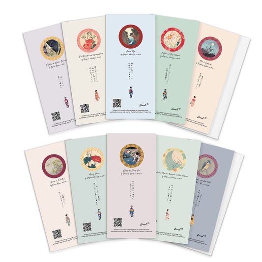 Set of 10 Japanese Ukiyo-e Greeting Cards – Long Format for Birthday, Anniversary & More