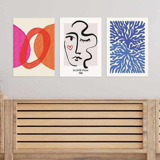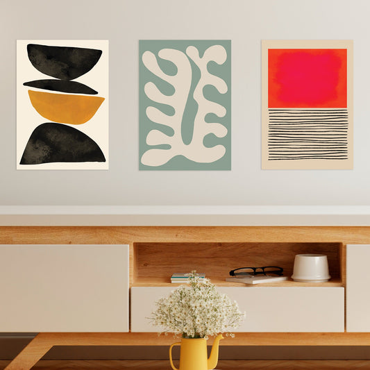 Set of 3 Three Abstract Art Print Posters Wall Home Decor Modern Contemporary Handdrawn Shapes Colorful Scandi Beautiful Minimal Mid-century