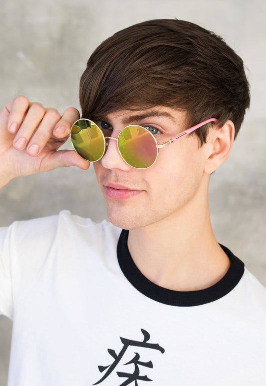 Round Mirror Lens Sunglasses in Pink & Purple – Retro Boho Style