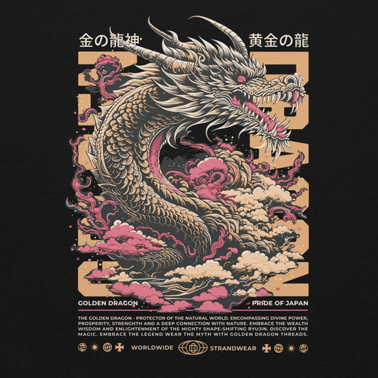 Ryujin Golden Dragon T Shirt Mens Womens Unisex Japan Japanese Calligraphy Honour Shinto Wisdom Wealth Tee Sukajan Anime Manga Casual Top