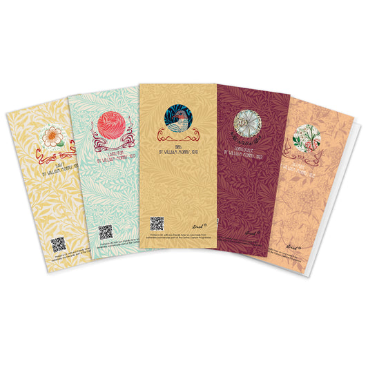 Set of 5 William Morris Greeting Cards – Long Format for Birthday & Congratulations