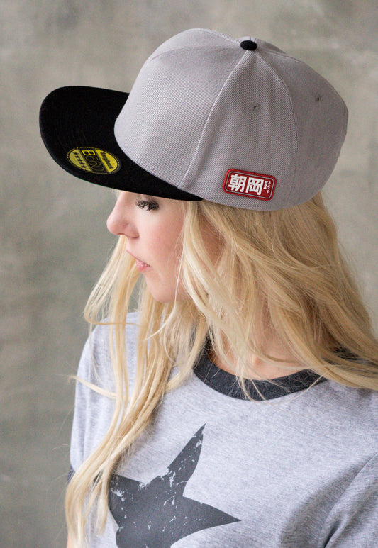 Snapback Baseball Cap with Japanese Applique – Grey with Green Underpeak