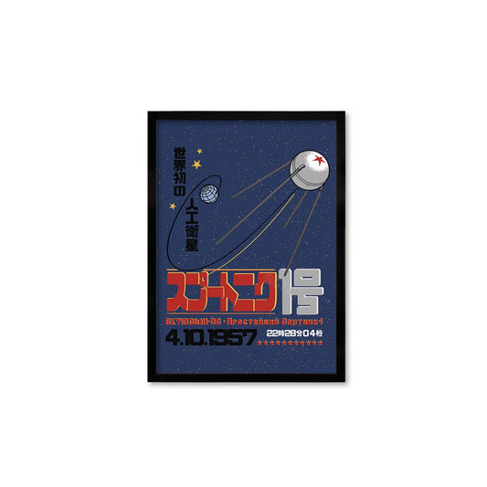 Sputnik 1 Art Framed Mounted Wall Decor Print Poster Japanese Soviet Retro USSR Cosmonauts Race Flight Science Sci Fi Geek Astronomy Laika
