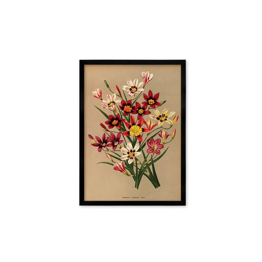 Sparaxis Harlequin Flowers Framed Art Mounted Wall Decor Print Poster Botanical Antique Vintage Retro Victorian Illustration Nature Pretty