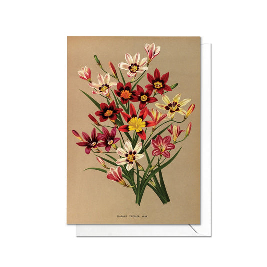 Sparaxis Star Flower Antique Botanical Greeting Card Birthday Floral Art with Envelope Valentines Vintage Victorian Beautiful Pretty - X31