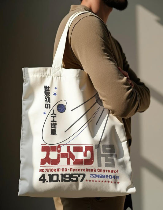 Sputnik 1 Canvas Tote Bag Art Japan Yoga Cute Gift Cotton Shopper Printed Eco Friendly Market Japanese Soviet Retro Science Sci Fi Mars Moon