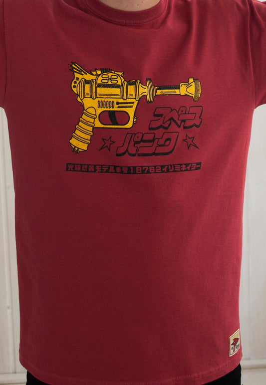 Space Punk Japanese T Shirt Ray Gun Science Fiction Geek Blaster Phaser Laser Gun Retro Comics Sci-Fi Larp Mens Womens Screen Printed Tee