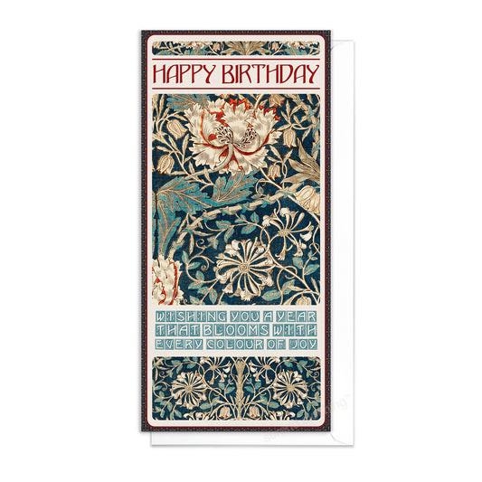 William Morris Honeysuckle Birthday Card – Elegant Long Floral Art Greeting Card DL Format