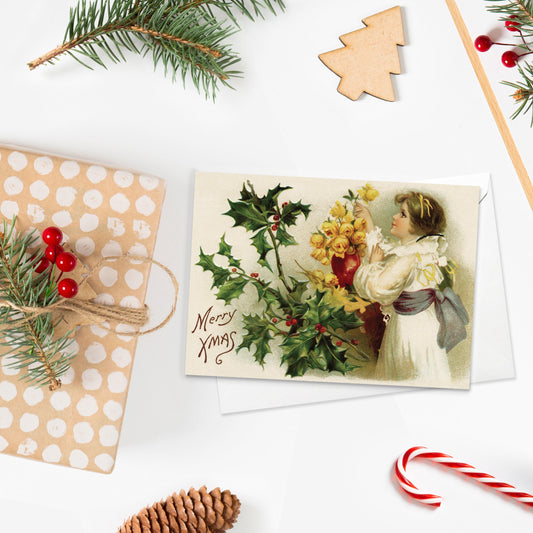 Victorian Greeting Cards Christmas Card Set of 10 Xmas Tree New Year Winter Edwardian English British Vintage Retro Santa Angel Cute Unique