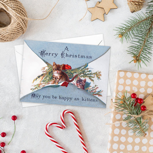 Victorian Cat Christmas Cards – Set of 10 | Vintage Kitten Holiday Greetings