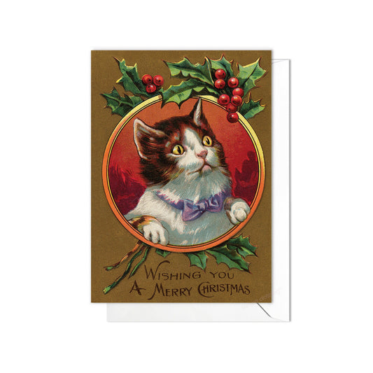 Victorian Greeting Cards Christmas Card Set Xmas Tree New Year Winter Edwardian Vintage Retro Cats Kitten Kawaii Kitsch Cute Funny - E02