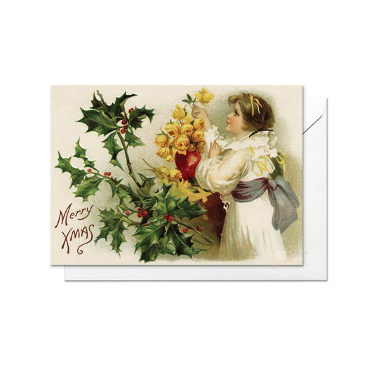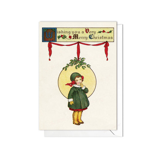 Victorian Greeting Cards Christmas Card Xmas Tree New Year Winter Edwardian British Vintage Old Retro Santa Girl Mistletoe Cute - M03