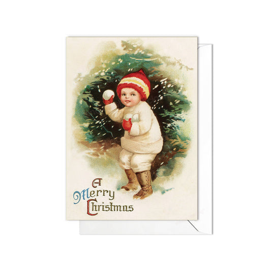 Victorian Greeting Cards Christmas Card Xmas Tree New Year Winter Edwardian Vintage Old Retro Santa Snowball Fight Child Cute Kawaii - B05