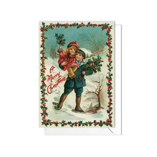 Victorian Greeting Cards Christmas Card Xmas Tree New Year Winter Edwardian Vintage Old Retro Santa Brother Sister Children Cute - C22