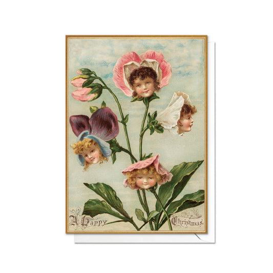 Weird Victorian Greeting Cards Christmas Card Set Xmas New Year Winter Edwardian Vintage Retro Children Flower Head Faces Creepy Funny - F11