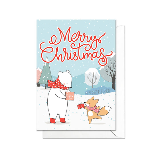 Christmas Greeting Card Kawaii Merry Xmas Tree New Year Winter Pretty Animals Fox Polar Bear Snowman Retro Santa Claus Cute Gift Cakes - F67