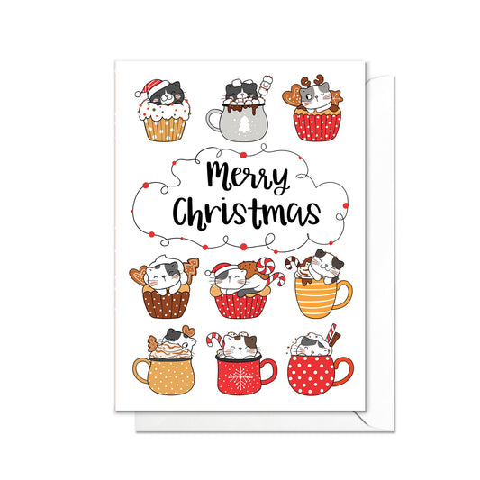 Christmas Greeting Card Kawaii Merry Xmas Tree New Year Winter Pretty Cats Kittens Retro Santa Claus Kittens Cute Cat-Lover Gift Cakes - S35