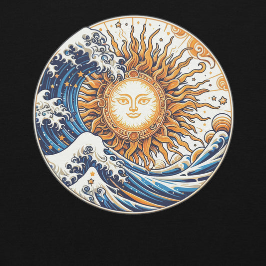 Sun & Waves Hooded Top Mens Women Unisex Vintage Sun Illustration Japanese Kanagawa Great Wave Boho Nature Ocean Art Minimalist Hoodie Hoody