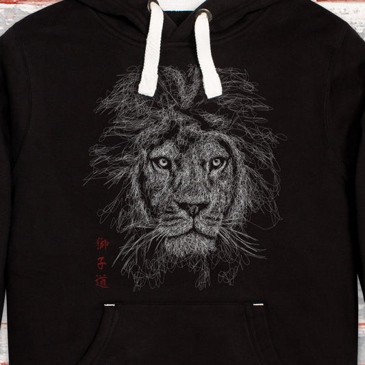 “Way of the Lion” Hoodie – Japanese Calligraphy Minimalist Line-Art Lion (Unisex)