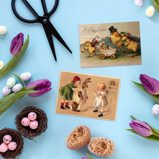 Victorian Greeting Cards Easter Card Set Sunday Spring Edwardian English British Vintage Retro Rabbit Bunny Eggs Chicks Children Cute Pretty