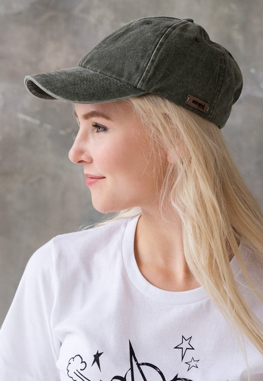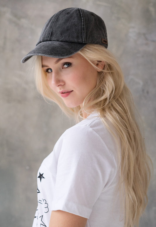Washed Cotton Baseball Cap with Ultrasuede Patch - Distressed Grey