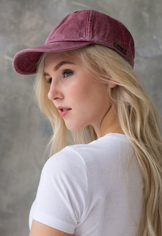 Washed Cotton Baseball Cap with Ultrasuede Patch - Distressed Red
