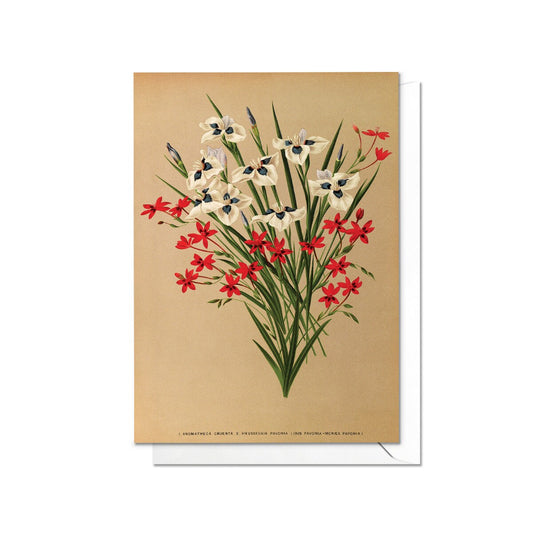 Tiger Iris & Freesia Antique Botanical Greeting Card Birthday Floral Art with Envelope Valentines Flowers Vintage Victorian Beautiful - A23