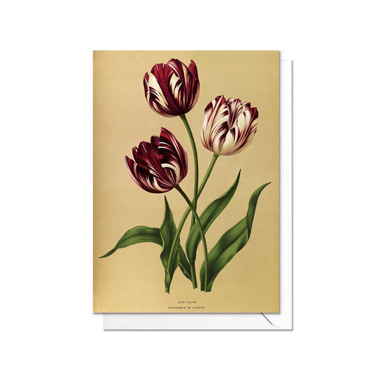 Tulips Antique Botanical Greeting Card Birthday Floral Art with Envelope Valentines Flowers Vintage Purple Victorian Beautiful Pretty - T01