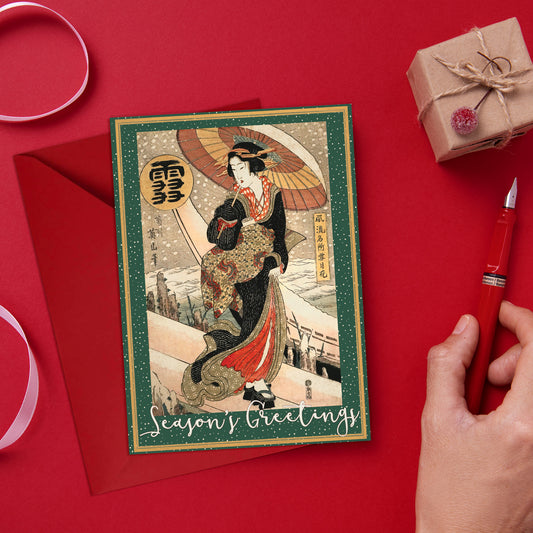 “Beauty in the Snow” by Kikukawa Eizan – Japanese Ukiyo-e Christmas Greeting Card – Large A5 Woodblock Art Card with Envelope