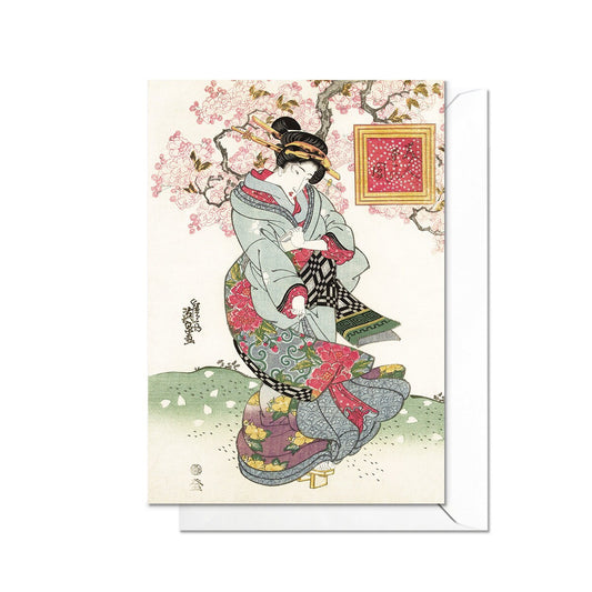 Beauty Sakura Blossom Japanese Ukiyo-e Art Greeting Card Woodblock Print Aesthetic Keisai Eisen Geisha Maiko Beautiful Elegant Luxury - B81