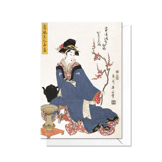 Beauty Plum Blossom Japanese Ukiyo-e Art Greeting Card Woodblock Print Aesthetic Kikukawa Eizan Geisha Maiko Beautiful Elegant Luxury - P56