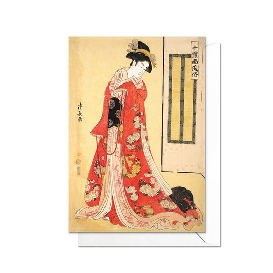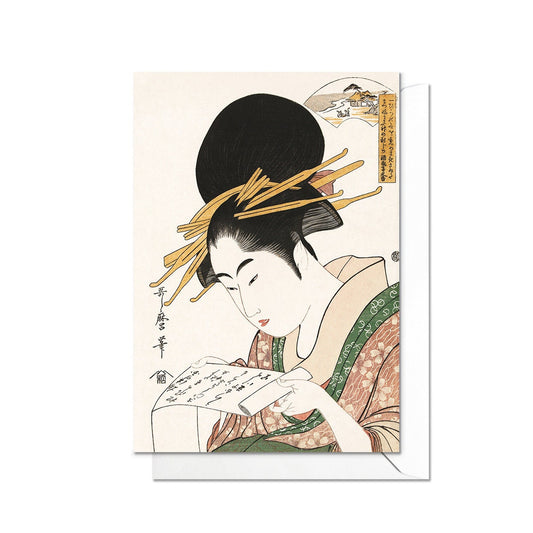 Beauty Reading Japanese Ukiyo-e Art Greeting Card Woodblock Print Aesthetic Geisha Maiko Kitagawa Utamaro Beautiful Elegant Luxury - L75