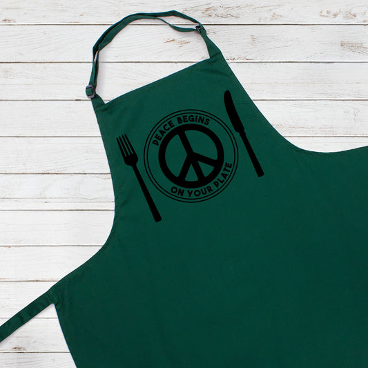 Vegan Apron Peace Begins On Your Plate Veggie Herbivore Peace Sign Logo Slogan Women's Mens One Size Printed Baking Cooking Apron Gift Gifts