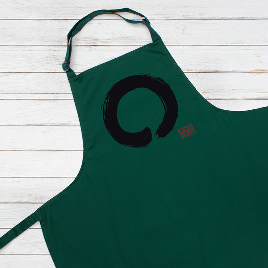 Vegan Printed Baking Cooking Apron Japanese Enso Buddist Circle Plant Based Unique Eco Womens Mens One Size Full Length Chefs Birthday Gift