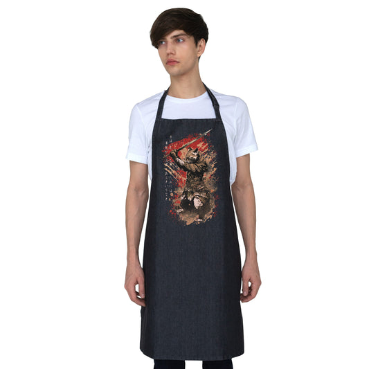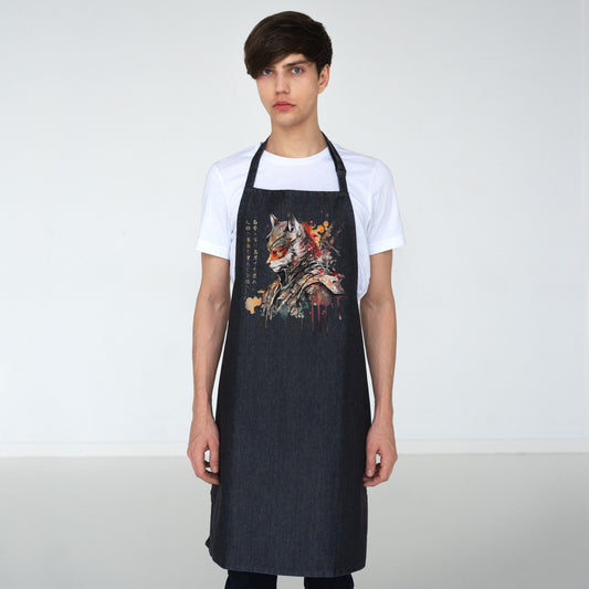 Japanese Samurai Fox Kitsune Printed Apron Baking Cooking Calligraphy Anime Traditional Chef Womens Mens Full Length One Size Gifts Gift