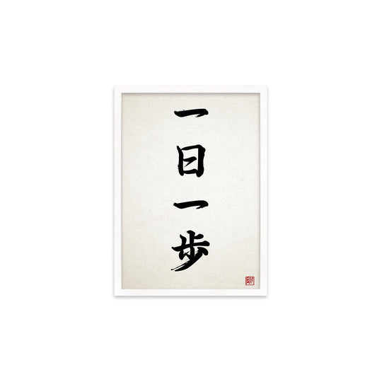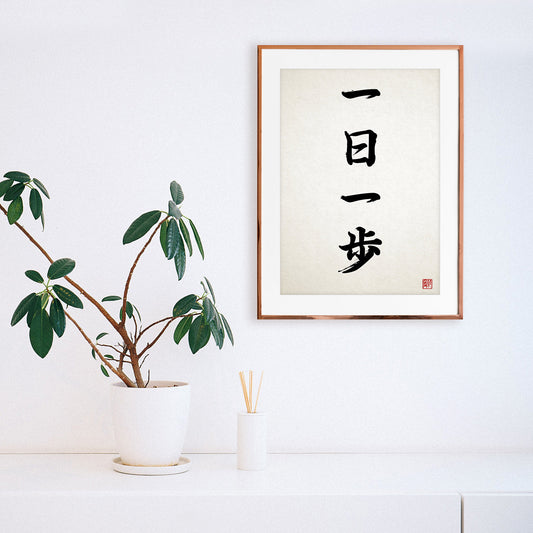 Japanese Calligraphy Wall Art Print Poster Ichinichi Ippo Woodblock Ukiyo-e Buddhist Zen Inspirational Positive Beautiful Tattoo Kanji Yoga
