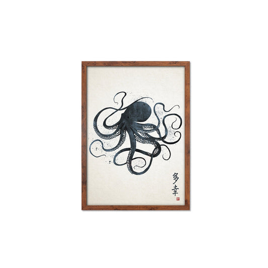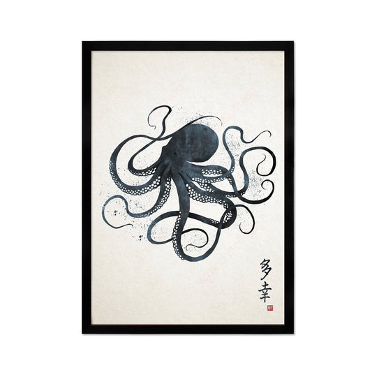 Japanese Octopus Art Print Poster Woodblock Ukiyo-e Style Framed Mounted Wall Samurai Tattoo Monster Calligraphy Beautiful Bushido A3 A2