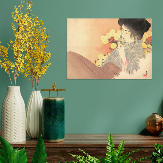 Japanese Beauty Ukiyo-e Art Print Poster Woodblock Wall Decor Kajita Hanko Kuchi-e Bijin Chrysanthemum Geisha Maiko Kimono Obi Beautiful A3