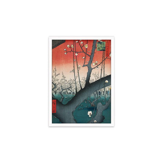 Japanese Blossoms Art Framed Mounted Ukiyo-e Wall Decor Print Poster Woodblock Hiroshige Ando Kameido Plum Park Garden Landscape Calligraphy