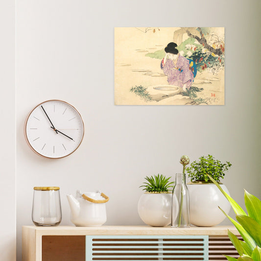 Japanese Beauty Ukiyo-e Art Print Poster Woodblock Wall Decor Kajita Hanko Kuchi-e Bijin Garden Well Geisha Maiko Kimono Obi Beautiful A3