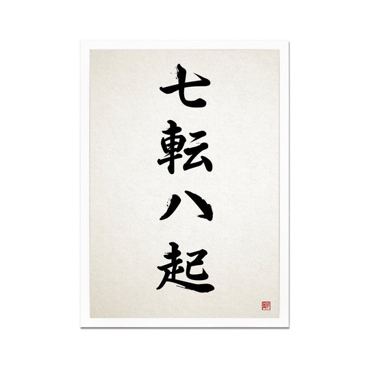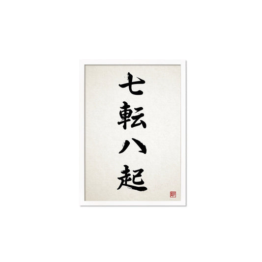 Japanese Calligraphy Wall Art Print Poster Woodblock Ukiyo-e Zen Inspirational Quote Nanakorobi Yaoki Framed Mounted Tattoo Kanji Yoga A3 A2