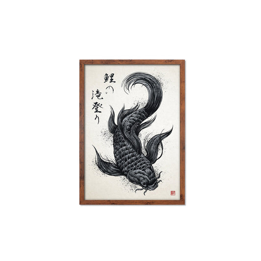 Japanese Koi Carp Art Print Poster Woodblock Ukiyo-e Style Framed Mounted Wall Samurai Tattoo Monster Calligraphy Beautiful Bushido A3 A2