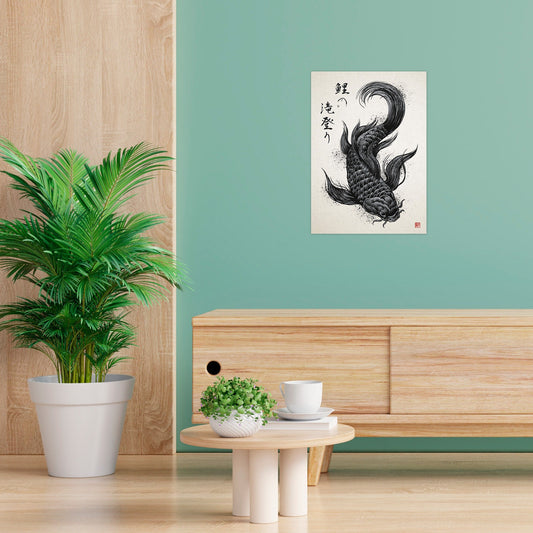 Japanese Koi Carp Art Print Poster Woodblock Ukiyo-e Wall Samurai Lucky Fish Tattoo Kanji Zen Gyotaku Calligraphy Beautiful Bushido A3 A2