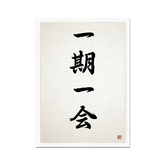 Japanese Calligraphy Wall Art Print Poster Ichigo Ichie Framed Mounted Woodblock Ukiyo-e Buddhist Zen Inspirational Tattoo Kanji A2 Large
